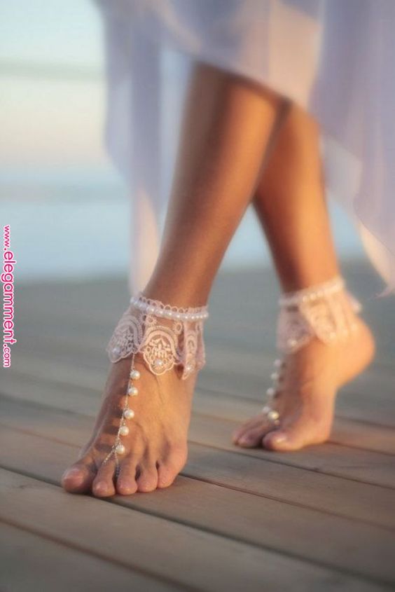 Now yo our favourites: barefoot sandals, for those who want to feel the sand under their feet as they walk down the aisle.